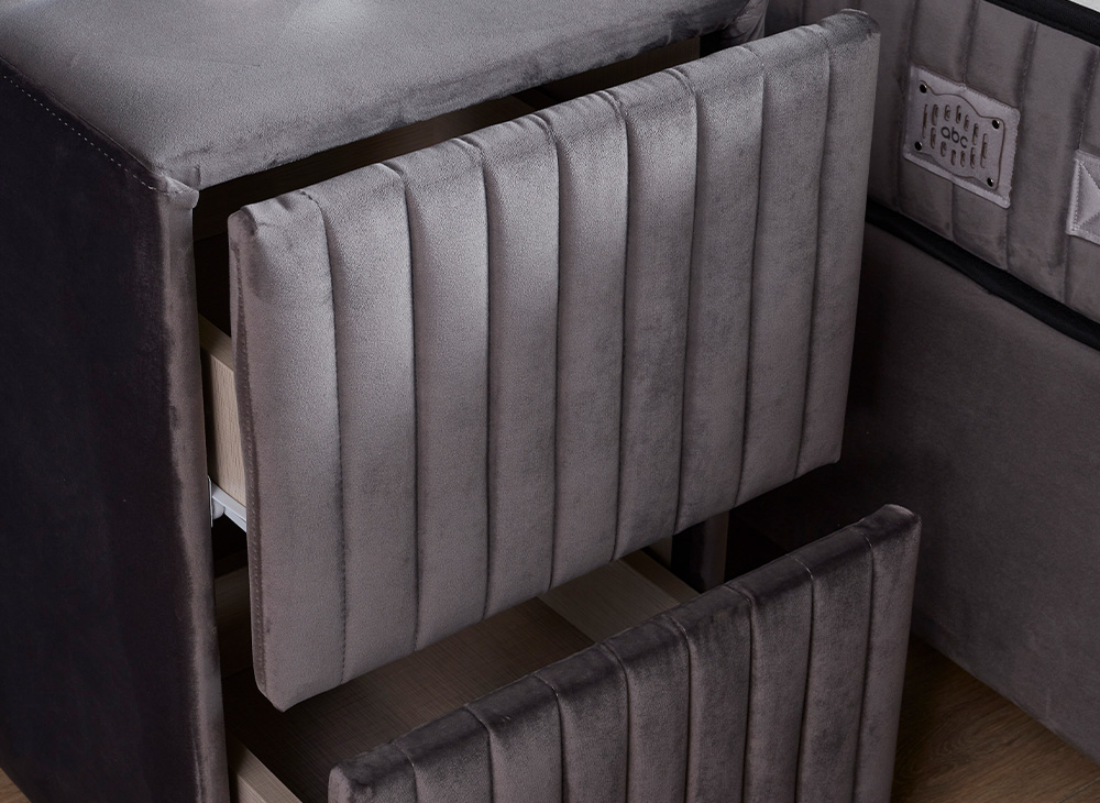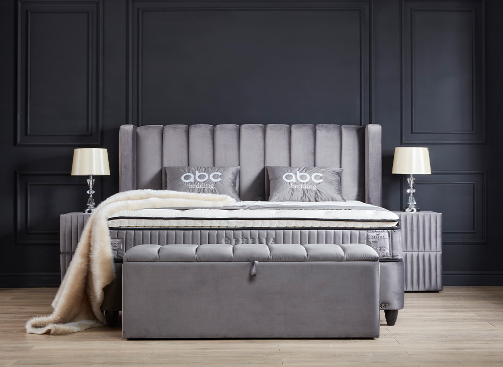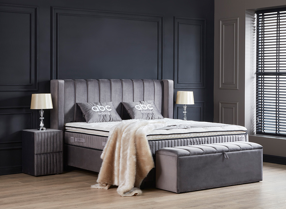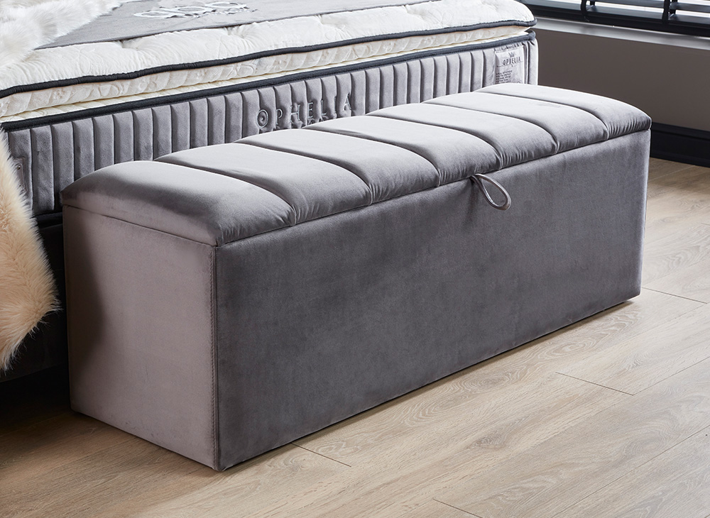 Het opbergbed Ophelia van Bedvision is een sfeervol en klassiek bed met een slim opbergsysteem. Het bed heeft 2 opbergboxen die vanaf het voeteneinde geopend kunnen worden en een handige opbergruimte onder het matras. Het bed heeft een volledig metalen frame gestoffeerd in een luxe meubelstof, gasveren die hulp bieden bij het openen van de boxen en een matras van ca. 30 cm dik met een 5-slags binnenvering, afgewerkt met een hoogwaardig koudschuim en meegestoffeerd in de luxueuze meubelstof. Het bed is alleen verkrijgbaar in de grijze kleur en stof zoals afgebeeld op de foto. Het bed wordt geleverd door heel Nederland.