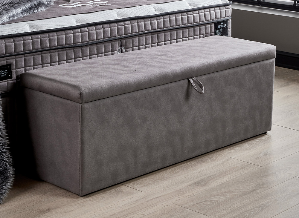 Het opbergbed Sevilla is een luxe en sfeervolle bed met een slim opbergsysteem. Het heeft 2 opbergboxen die vanaf het voeteneinde geopend kunnen worden en een grote opbergruimte onder het matras. Het bed heeft een volledig metalen frame gestoffeerd in een luxe meubelstof en gasveren die hulp bieden bij het openen van de boxen. Het matras is 30 cm dik, met een 7-zone pocketvering, afgewerkt met een hoogwaardig koudschuim en meegestoffeerd in de luxueuze meubelstof. Het hoofdbord is een klassieke, gecapitonneerde look die een fraaie, levendige uitstraling geeft aan ieder slaapkamerinterieur. Het bed is verkrijgbaar in grijze kleur zoals afgebeeld op de foto en wordt geleverd door heel Nederland.